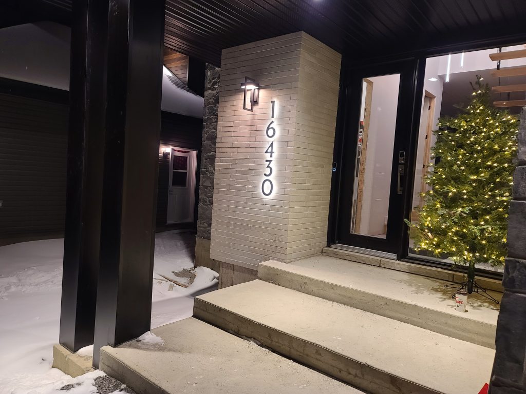 For added visibility and curb appeal, we also offer backlit LED house numbers. These create a soft halo of light behind each number, making your address easy to spot at night without harsh glare. It’s a practical upgrade that also elevates the look of your home.