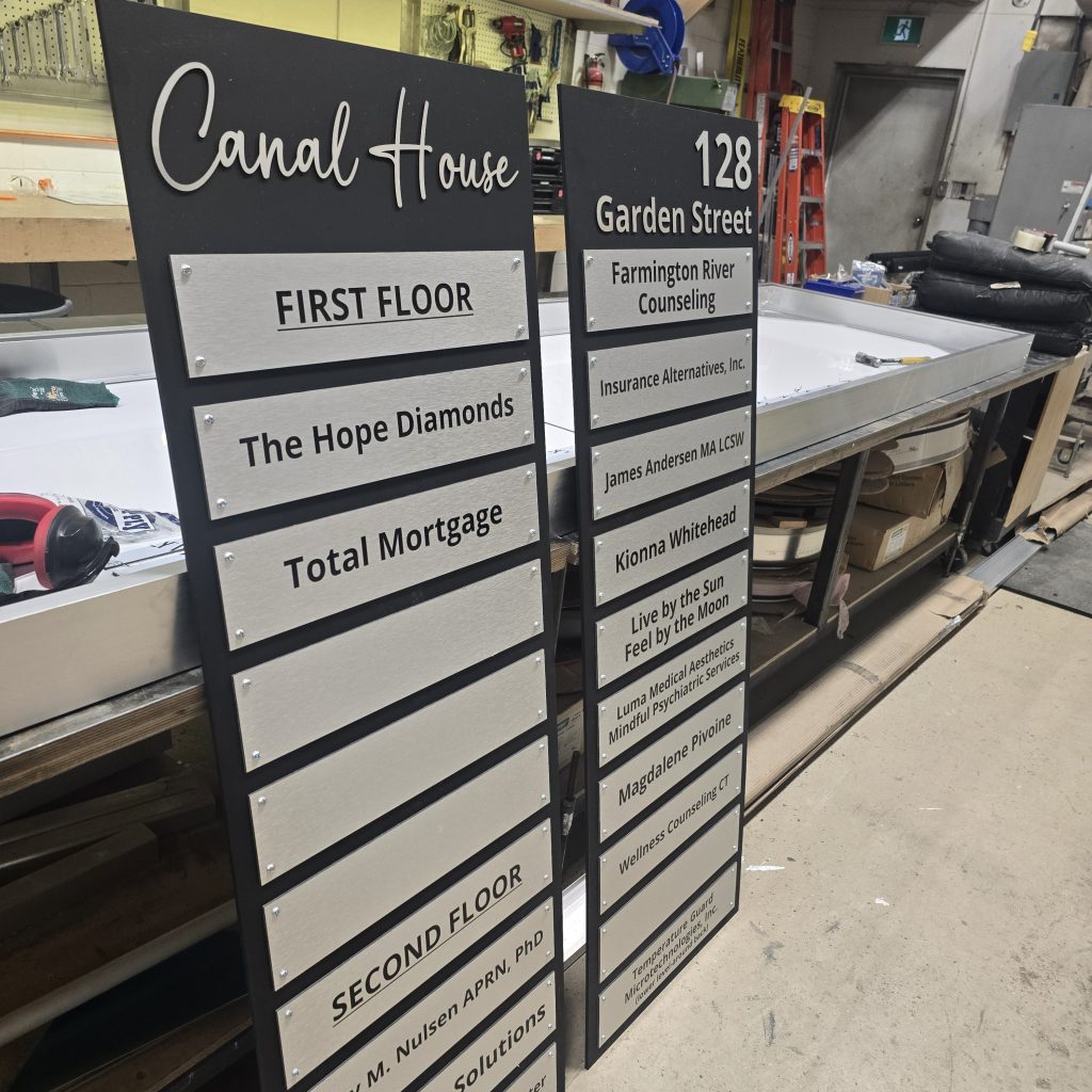 Another advantage of custom aluminum directories is durability. Unlike plastic directory boards that can discolor or crack over time, aluminum directories maintain their appearance for years and work well in both indoor lobbies and outdoor entrance areas.